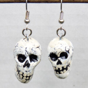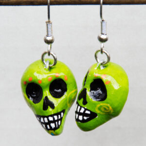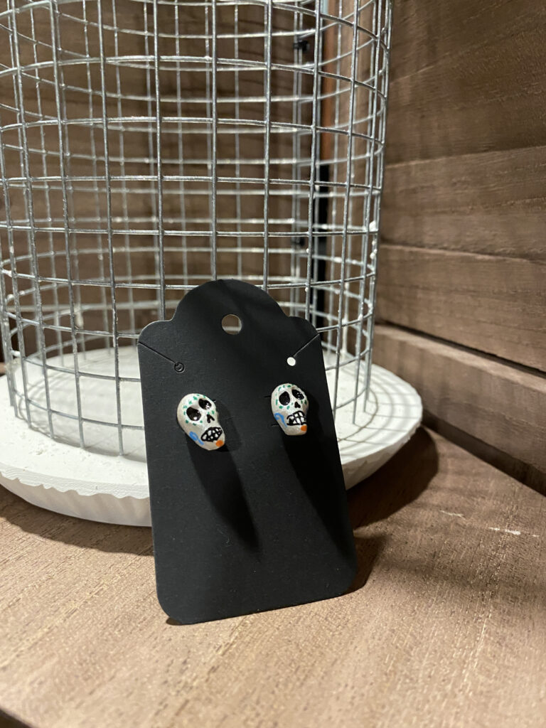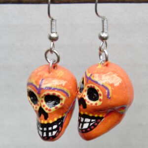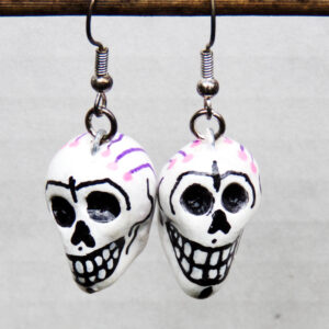 Skull earrings are made with polymer clay, acrylic paint and varnish. Each pair is uniquely crafted. Some are obviously inspired by the Day of the Dead, while others take off in different design directions.